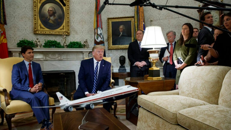 Seated behind the plane were Trump and Canadian Prime Minister Justin Trudeau, whose visit to Washington on Thursday to discuss trade and tariffs was suddenly upstaged by the rising tensions in the Middle East. With reporters peppering Trump with a cacophony of questions about how he would respond to Tehran, the president took a moment to extoll the virtues of the new presidential plane. “It’s going to be terrific,” he declared.