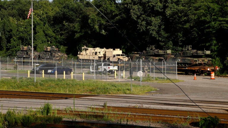 The vehicles are being guarded by military police but are visible to passers-by on nearby paths. A military official earlier told the AP that the tanks were transported north from Fort Stewart in Georgia.