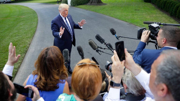 The president weighed in Friday when asked about the plastic straw debate before departing for New Jersey, saying, “I do think we have bigger problems than plastic straws.”