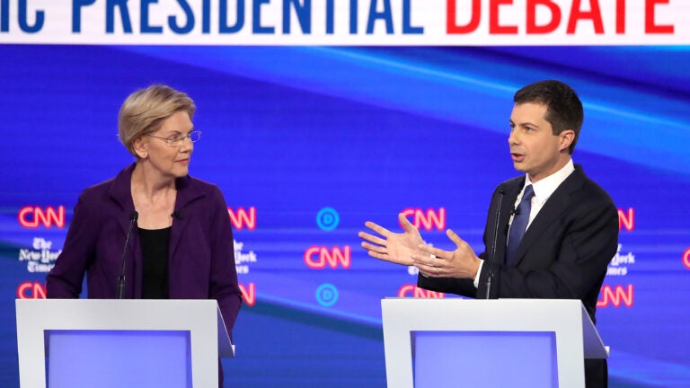 Buttigieg made the case for his health care proposal, “Medicare-for-all-who-want-it,” which would create a government-run health insurance program, but also give individuals the option of keeping their private plans. Warren hit back, arguing that his plan really meant “Medicare-for-all-who-can-afford-it” and that Medicare-for-All is the only way to ensure universal health care coverage. She also expanded on her past answer and pledged not to sign a bill that would result in a net increase in costs for the middle class.