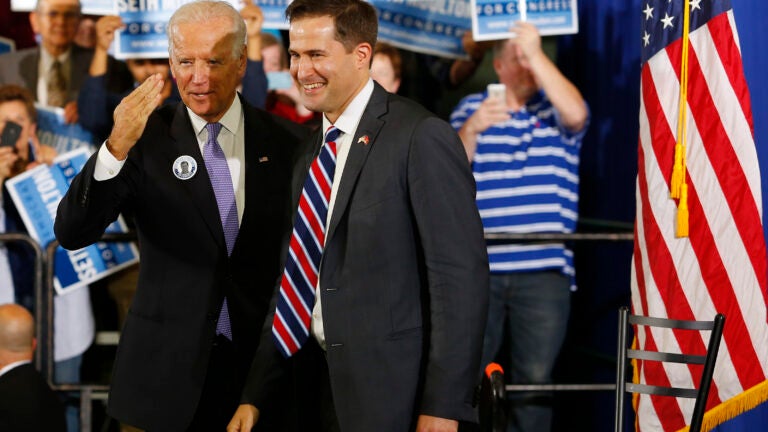 Moulton also noted that Biden was the “first person” to hold a rally for him after the now-41-year-old Salem Democrat won his insurgent 2014 primary campaign against incumbent Rep. John Tierney.
