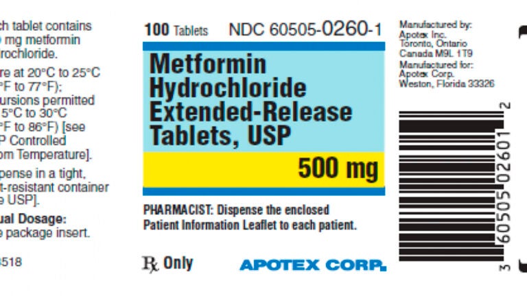 Drugmaker Apotex Corp. recalled its extended-release metformin distributed in the U.S. earlier this week after the FDA found contamination in one lot. Apotex said in a statement it recalled all supplies of the drug “out of an abundance of caution.” The company said it stopped selling the drug in the U.S. in February 2019 and that little remains on the market.