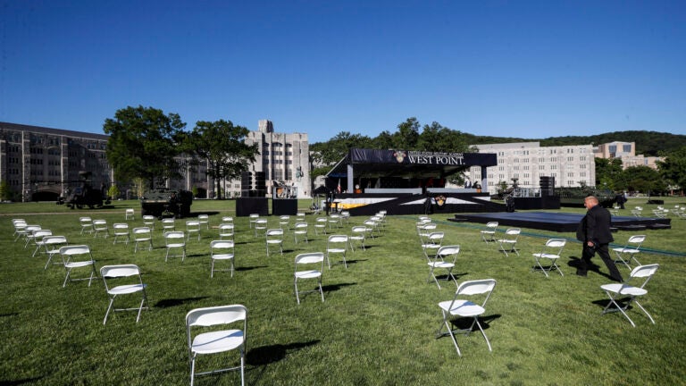 The recently commissioned second lieutenants will wear masks as they march onto West Point’s parade field, instead of into Mitchie Stadium, the longtime commencement venue. They will sit 6 feet (1.8 meters) apart, in keeping with federal guidelines to practice social distancing during the outbreak.