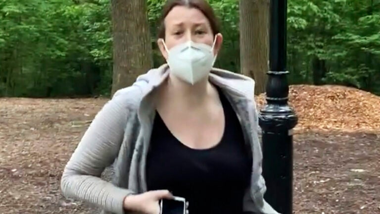 “I’m going to tell them there’s an African American man threatening my life,” Amy Cooper is heard saying in the video as she pulls down her face mask and struggles to control her dog.