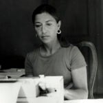 Laura Barr, of Jamaica Plain, holds up a sign remembering Ruth Bader Ginsburg outside the West Roxbury division of the Boston Municipal Court.