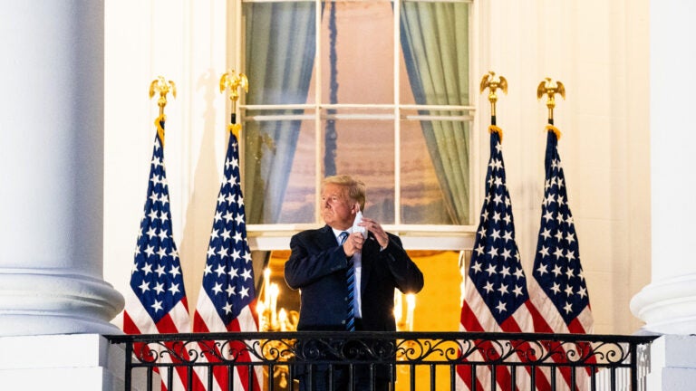 Lacking crucial details from the president’s medical team, some outside doctors tried another tack — evaluating the patient themselves. On Monday, in a highly choreographed event that was covered live on some cable channels, Trump was flown to the White House, where he left the Marine One helicopter, crossed the lawn and walked up a set of stairs, to what looked like an illuminated stage set. At the top, he removed his mask, placed it in his pocket and flashed two thumbs up.