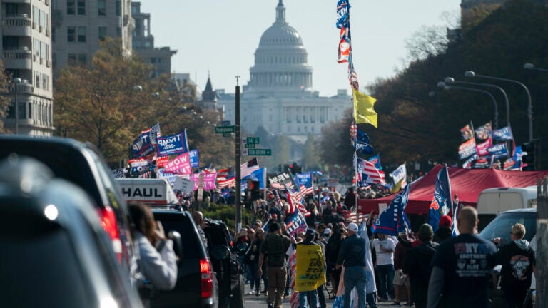 A week after the presidential race was called for Democrat Joe Biden, hundreds of Trump loyalists converged on the nation’s capital to protest the election results and falsely assert the vote was stolen.