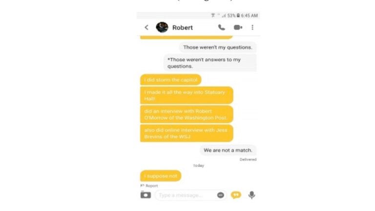 He boasted on Bumble about storming the Capitol, feds say. His would-be date turned him in: ‘We are not a match.’