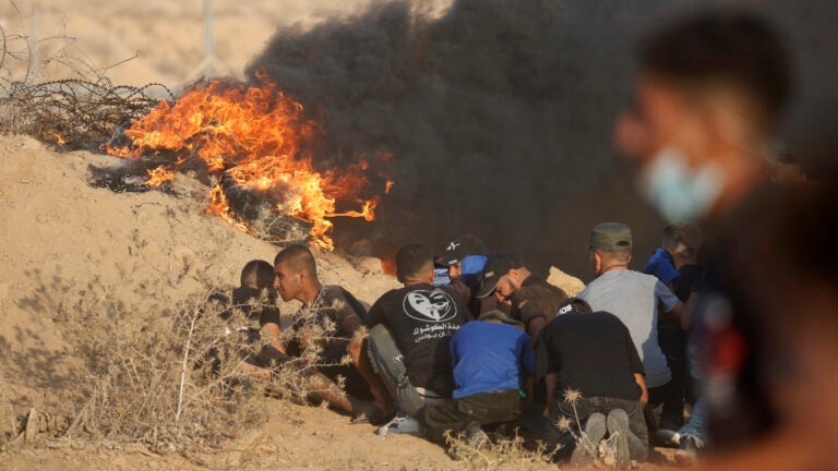 Later Saturday, Hamas-linked operatives launched a number of incendiary balloons from Gaza, sparking two fires in southern Israel, according to the Israeli Fire Service.