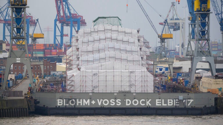 BERLIN — German authorities say they have seized a massive superyacht in Hamburg after determining that it belongs to the sister of Russian oligarch Alisher Usmanov.