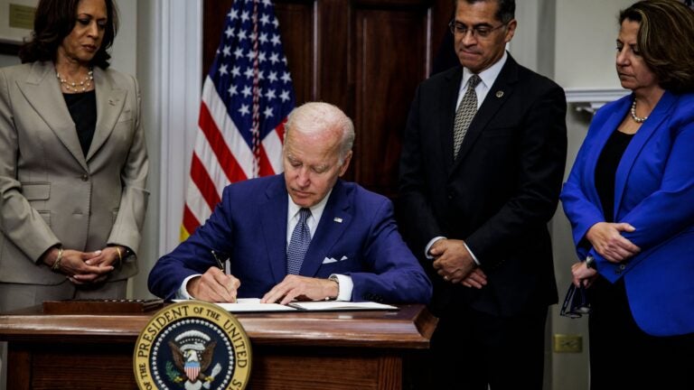 Biden’s action formalized instructions to the Departments of Justice and Health and Human Services to push back on efforts to limit the ability of women to access federally approved abortion medication or to travel across state lines to access clinical abortion services. He was joined by Vice President Kamala Harris, HHS secretary Xavier Becerra and Deputy Attorney General Lisa Monaco in the Roosevelt Room as he signed the order.