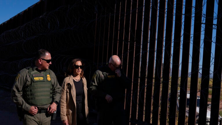 Harris walks fence at U.S.-Mexico border as she works to project tougher stance on migration