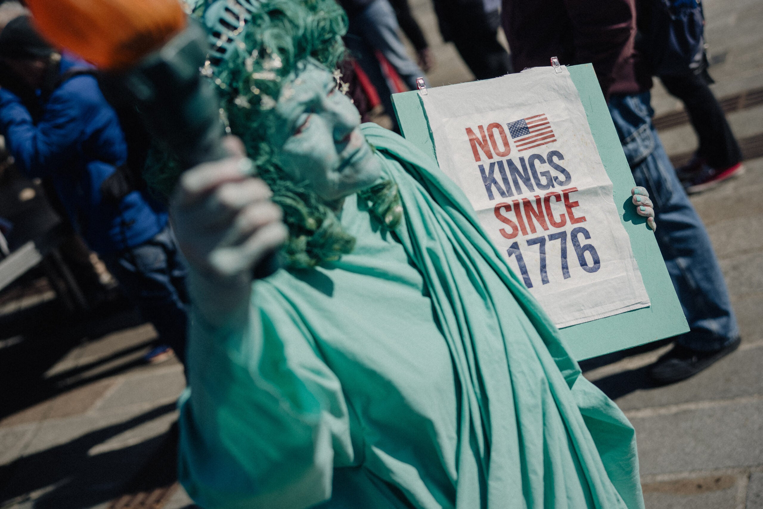 A person dressed as the Statue of Liberty is holding a sign that reads “No kings since 1776” during a protest against the far right as part of the “No Kings” day of protest at Place de la Bastille in Paris, France, on March 28, 2026. (Photo by Bastien Ohier / Hans Lucas / AFP via Getty Images)People are listening to a speech and a sign that reads “Pas de rois” or No kings during a protest against the far right as part of the No Kings day of protest at Place de la Bastille in Paris, France, on March 28, 2026. (Photo by Bastien Ohier / Hans Lucas / AFP via Getty Images)Participants walk during a demonstration against the Middle East war titled “No Kings,” in Rome on March 28, 2026. (Photo by Tiziana FABI / AFP via Getty Images)Participants walk behind a banner “for a world free of war” during a demonstration against the Middle East war titled “No Kings,” in Rome on March 28, 2026. (Photo by Tiziana FABI / AFP via Getty Images)A woman holds an anti-Donald Trump placard reading “Elect a clown. Get ready for a circus” as she takes part in a “No Kings Day” protest in Madrid on March 28, 2026. (Photo by Thomas COEX / AFP via Getty Images)Demonstrators holding anti-Donald Trump placards take part in a “No Kings Day” protest in Madrid on March 28, 2026. (Photo by Thomas COEX / AFP via Getty Images)Protesters participate in a “No Tyrants” demonstration in front of the U.S. Consulate in Amsterdam on March 28, 2026, in solidarity with the anti-Trump “No Kings” demonstrations taking place throughout the U.S. (Photo by Dingena Mol / ANP / AFP via Getty Images) / Netherlands OUTProtesters participate in a “No Tyrants” demonstration in front of the U.S. Consulate in Amsterdam on March 28, 2026, in solidarity with the anti-Trump “No Kings” demonstrations taking place throughout the US. (Photo by Dingena Mol / ANP / AFP via Getty Images) / Netherlands OUT