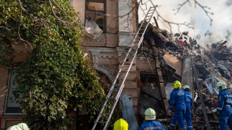 Vitaly Klitschko, the mayor of Kyiv, said that a young couple who were expecting a child were among the dead pulled from the rubble of a residential building on Monday. The woman was six months pregnant. Two more people were trapped and 18 others were wounded in the blasts in central Kyiv, according to Ukraine’s State Emergency Service.