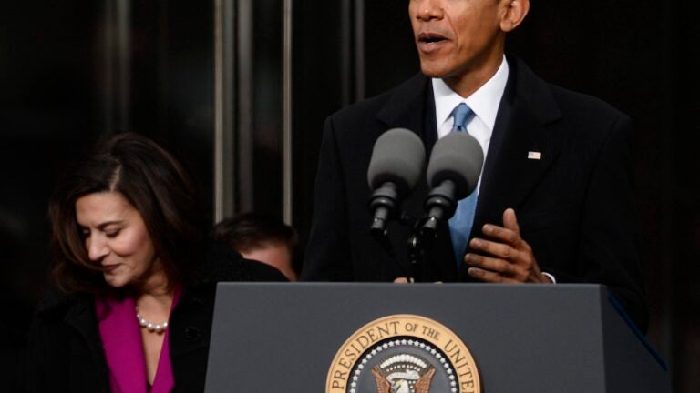 “Boston, know that Michelle and I have joined our prayers with yours these past few days for a hero, former Army ranger and Boston Police Officer John Moynihan, who was shot in the line of duty Friday night,’’ Obama said during a speech Monday at the opening of the Edward M. Kennedy Institute for the United States Senate.