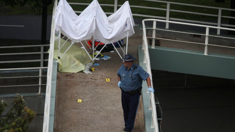 The man ran from the officers and brandished a knife, Alben said. He then ran onto Storrow Drive, back onto the Esplanade, and onto a footbridge, he said.