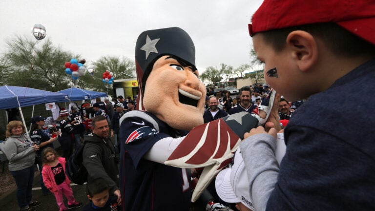 Pat, the official mascot of the New England Patriots, took part in Random Acts of Kindness Day on Wednesday.