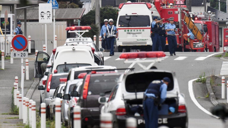 Police said they responded to a call at about 2:30 a.m. from an employee saying something horrible was happening at the facility in the city of Sagamihara, 50 kilometers (30 miles) west of Tokyo.
