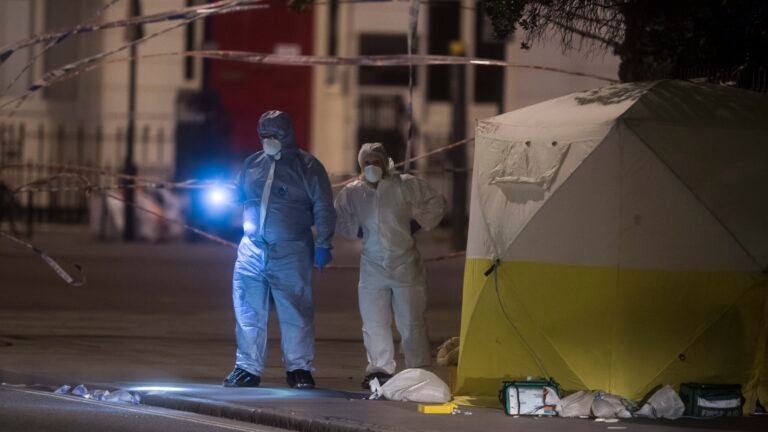 LONDON (AP) — London police say a woman has died and five others were injured in a knife attack in a central part of the city.