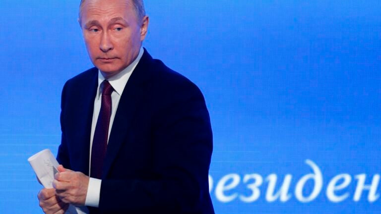 In his wide-ranging remarks, the Russian leader claimed that his country’s military is stronger than that of any potential aggressor, but acknowledged that the U.S. military is bigger. He also cast the modernization of Russia’s nuclear arsenals as a necessary response to the U.S. missile defense system.
