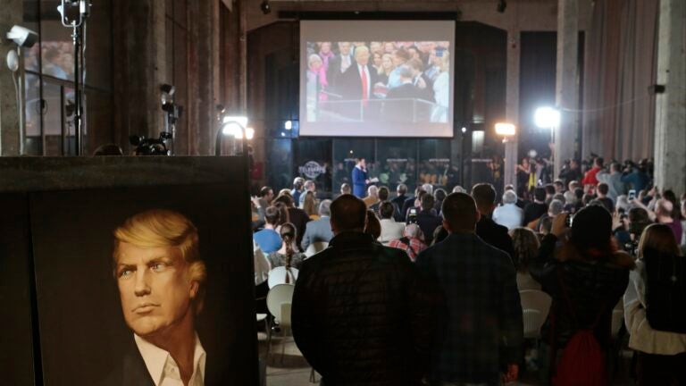 About 100 Trump sympathizers, nationalists and spin doctors gathered at a trendy loft just a few hundred meters away from the Kremlin to celebrate Friday, with a triptych of Trump, Russian President Vladimir Putin and French nationalist politician Marine Le Pen in the center of the hall.