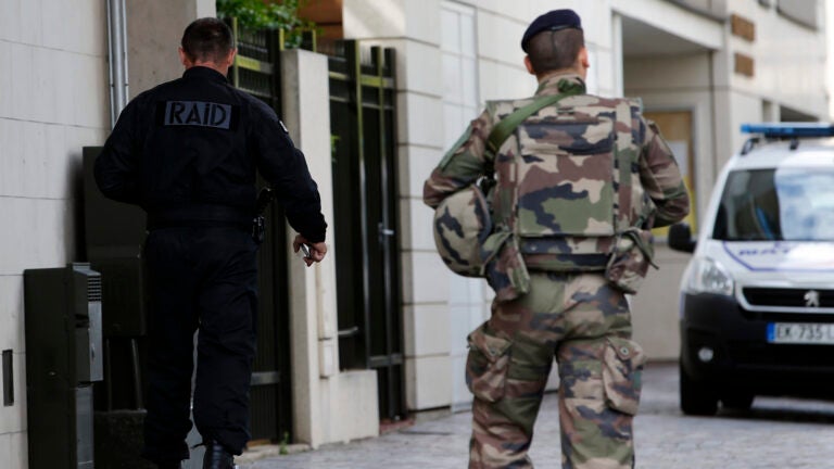 LEVALLOIS-PERRET, France (AP) — A man rammed his car into a group of soldiers near Paris, injuring six of them, and then was cornered by police in a highway manhunt – the latest in what’s become a disturbingly familiar pattern of attacks targeting French security forces.