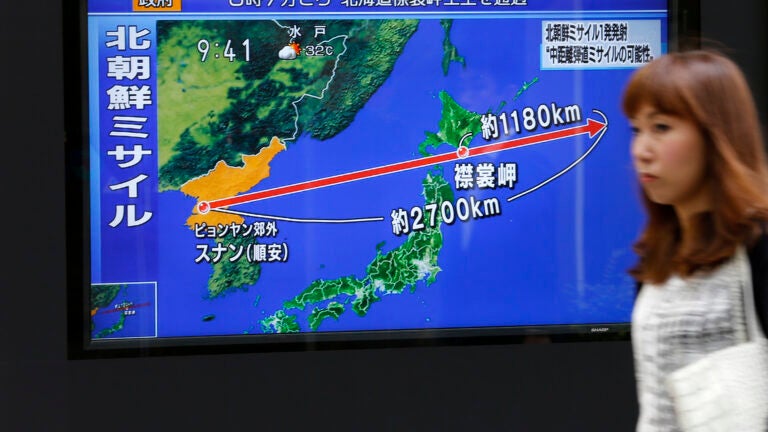 The North’s launch over Japan shouldn’t be a total surprise. Earlier this month, when threatening to lob four Hwasong-12s into the waters near Guam, North Korea specifically said they would fly over Japanese territory. North Korea in June also angrily reacted to the launch of a Japanese satellite it said was aimed at spying on the North and said Tokyo was no longer entitled to fault North Korea “no matter what it launches or whether that crosses the sky above Japan.”