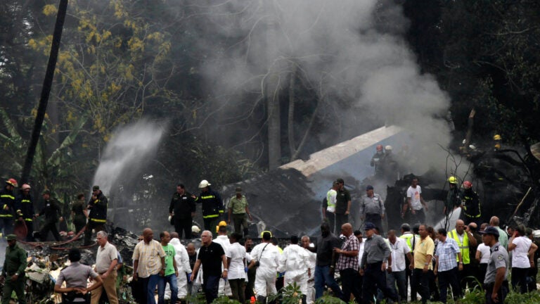 The Boeing 737 went down just after noon a short distance from the end of the runway at Jose Marti International Airport while on a short-hop flight to the eastern city of Holguin. Firefighters rushed to extinguish the flames that engulfed the field of debris left where Cubana Flight 972 hit the ground.
