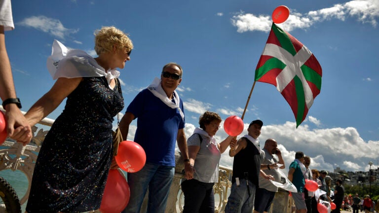 Protesters held hands or extended scarves between themselves to form the human chain, which connected the cities of San Sebastian, Bilbao and regional seat Vitoria.