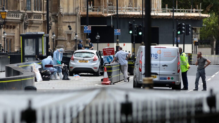 Armed police flooded the area after the incident was reported at 7:37 a.m., hauling the driver from the vehicle, arresting him and cordoning off streets surrounding the heart of Britain’s government. The nearby Westminster subway station was closed, and police asked people to stay away from the area.