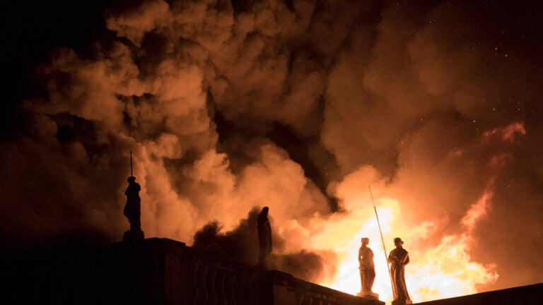 RIO DE JANEIRO (AP) — A huge fire engulfed Brazil’s 200-year-old National Museum in Rio de Janeiro, lighting up the night sky with towering flames as firefighters and museum workers raced to save historical relics from the blaze.
