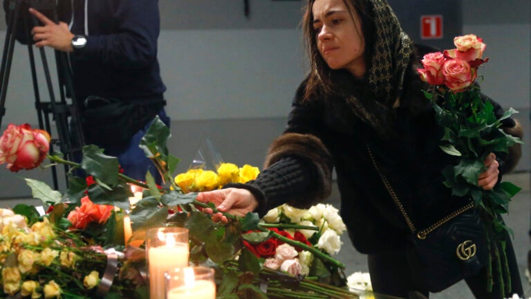On Sunday, the bodies were brought to Kyiv’s Boryspil Airport aboard a Ukrainian air force plane. An honor guard solemnly carried the coffins into the airport terminal, where a farewell observance is to last until the evening.