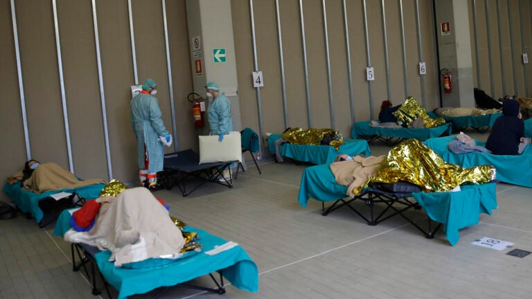 He also said the region was working with Italy’s civil protection agency to study the possibility of using an exhibition space abandoned by canceled conventions as a 500-bed intensive care ward.