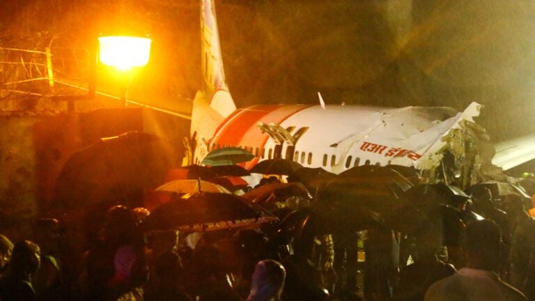The plane departed from Dubai and landed in the city of Kozhikode in the state of Kerala on Friday evening. Television channels broadcast images from the scene showing jagged pieces of the aircraft’s fuselage surrounded by emergency personnel.