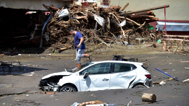 The floods struck on the heels of wildfires in southern Turkey that devastated forests in the seaside provinces of Mugla and Antalya, which are popular with tourists. At least 16 people died in those wildfires — including eight emergency workers as their firefighting plane crashed Saturday — and thousands of residents and tourists were forced to flee.