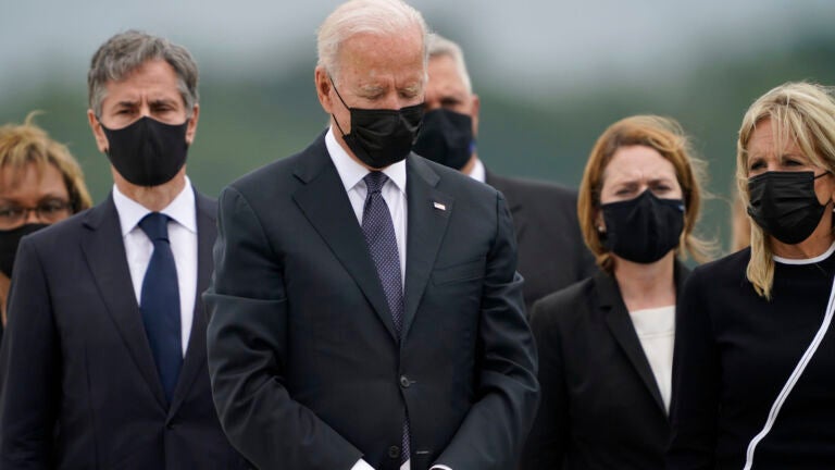 Biden was joined by several top aides, including Defense Secretary Lloyd Austin, chairman of the Joint Chiefs of Staff Gen. Mark Milley, and Secretary of State Antony Blinken. Eleven of the fallen service members’ families chose to allow their transfers to be open to media coverage. Two others took place out of view, but Biden was present for those as well.