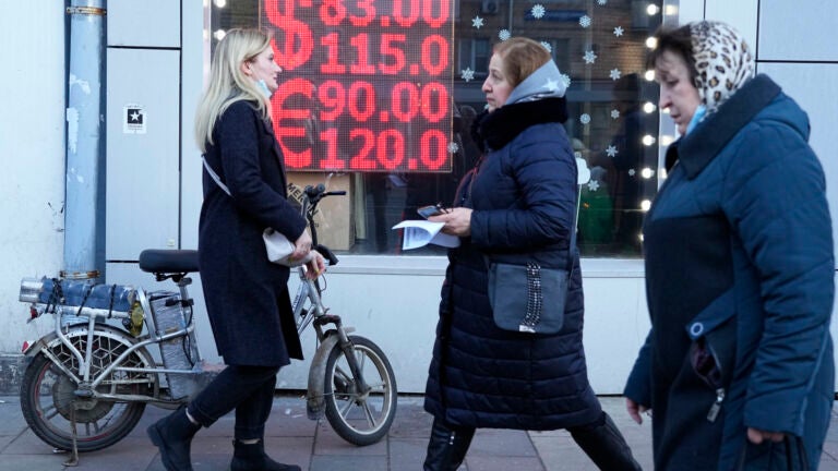After Russian stocks plummeted following the first rounds of sanctions, the government shut down the Moscow Stock Exchange Monday, and it remained closed Tuesday and Wednesday. The ruble’s value has tumbled to record lows, despite efforts by Russia’s central bank to prop it up, and interest rates have more than doubled.