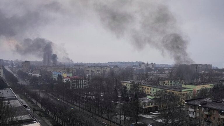 The Mariupol city council posted a video Thursday showing buses driving down a highway, saying a convoy bringing food and medicine was trying to reach the city. That convoy could be used to ferry back evacuated citizens.