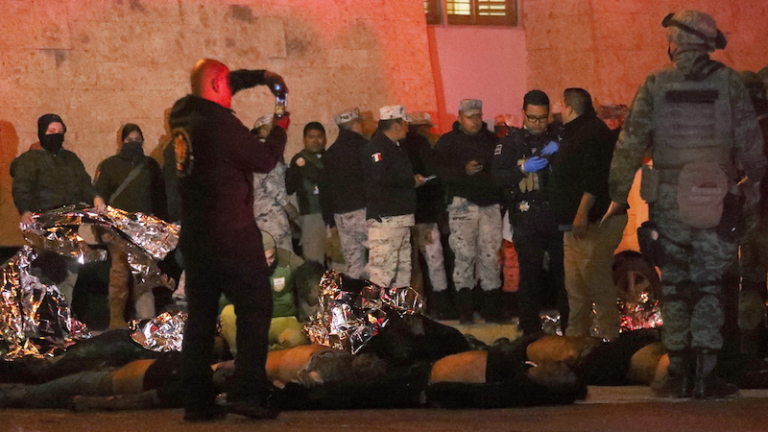 Hours after the fire broke out late Monday, rows of bodies were laid out under shimmery silver sheets outside the facility in Ciudad Juarez, across from El Paso, Texas. Ambulances, firefighters and vans from the morgue swarmed the scene.
