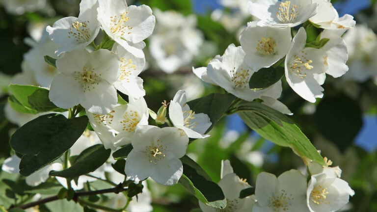 A. Mock orange is an unfussy and marvelously fragrant white shrub blooming now. It prefers full sun, but also blooms in shade. Branch dieback can occur from oystershell scale. If you see raised areas on the stems with lots of tiny -inch bumps shaped like, well, oyster shells, you might spray the bark with imidacloprid this fall. (Do not spray plants while in bloom, or you may threaten pollinators. And don’t let hired landscape companies do this either. Just ask to reschedule.)