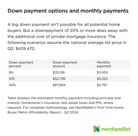 The report advises buyers to increase their down payment from 8 percent to 20 percent, noting that it can eliminate the private mortgage insurance requirement for most conventional loans. Increasing the percentage of down payment can also help cut down on the monthly housing cost.