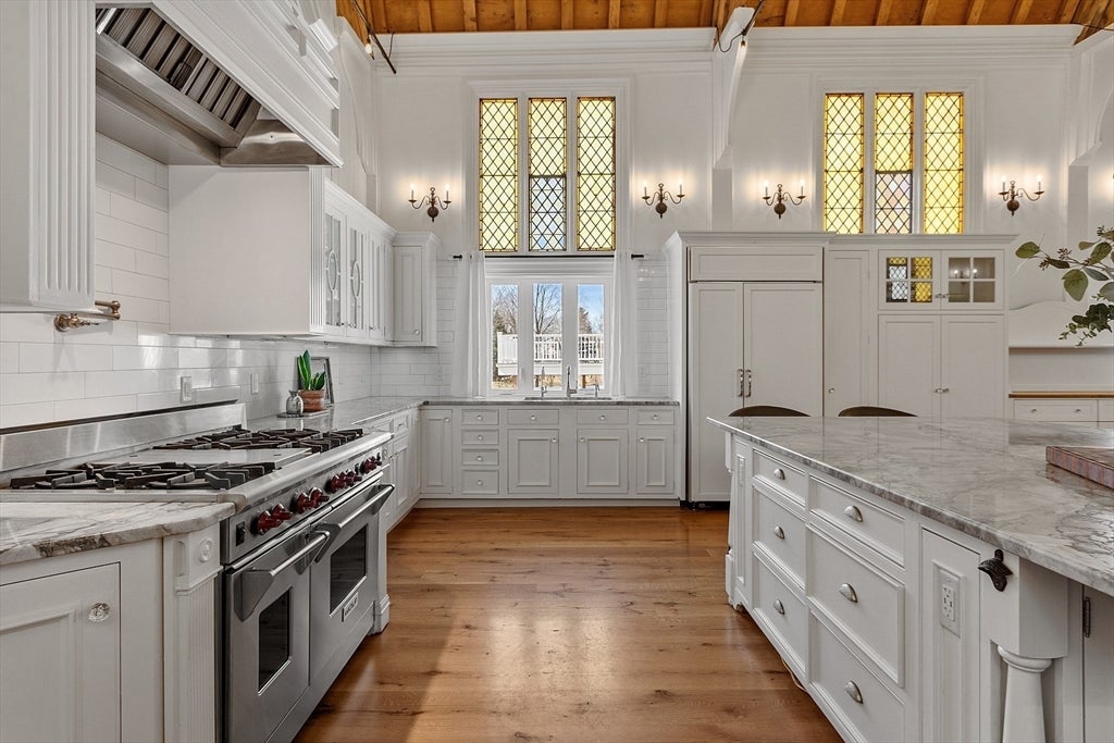 Known as the Sacred Heart Roman Catholic Church for over 100 years, 279 Main Street is now a six-bed, four-bath single-family residence tucked on a corner lot in the center of Groton. Constructed in 1887, it was originally used as the first chapel for the Groton School, and later moved to its current site on horse-drawn rollers.
