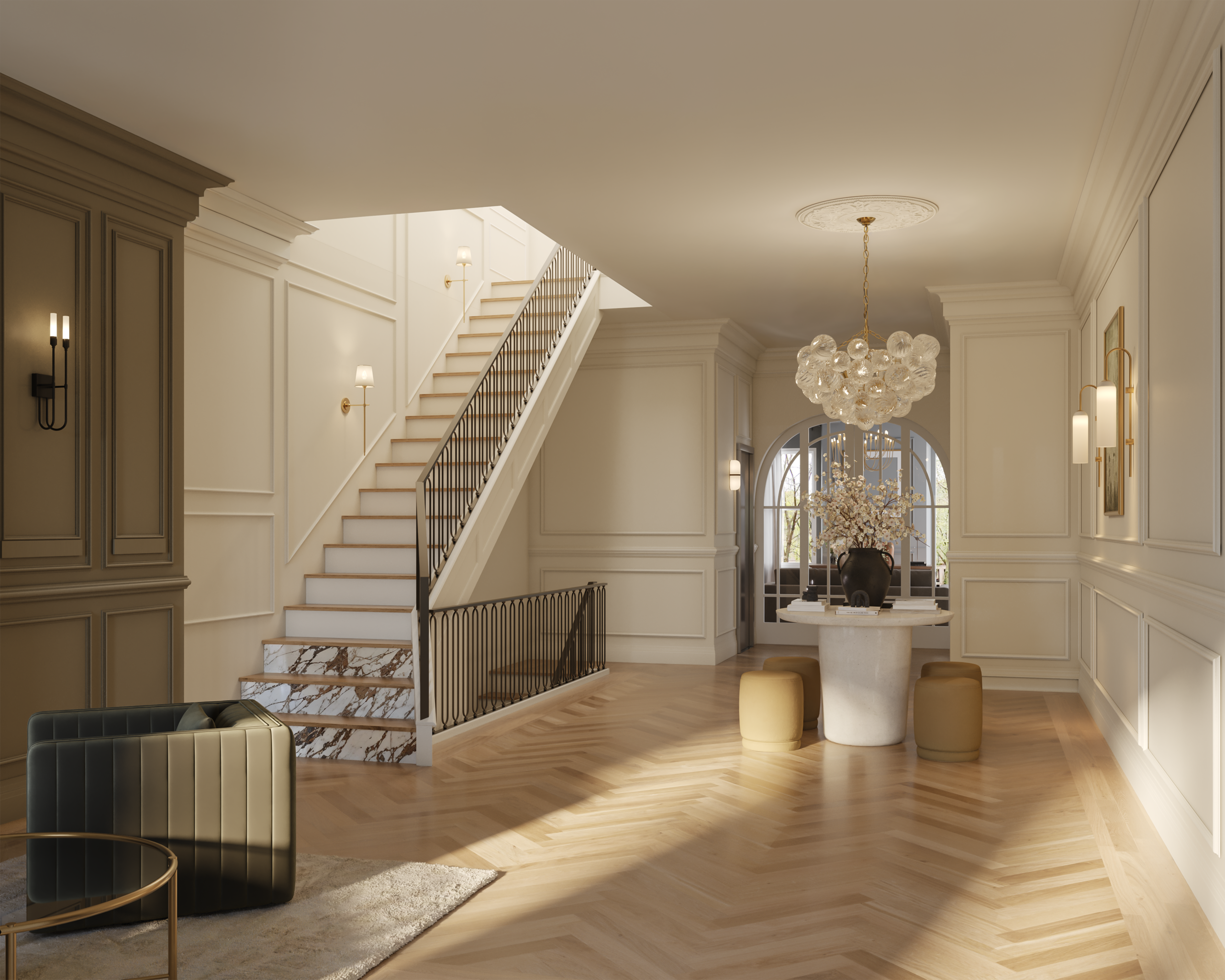 Spanning about 8,100 square feet, the five-bedroom residence will be across five elevator-served floors. Each bedroom will have its own private en-suite bath, with two additional half baths for guests.