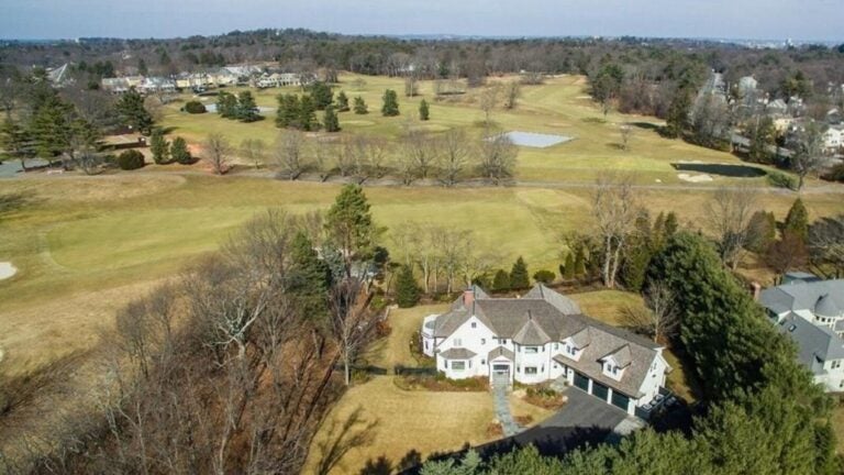 This 6,410-square-foot Colonial-style home sits on 1.04 acres abutting The Country Club’s second and sixth fairways and behind an 8-foot-high brick wall. Built in 2000, the property offers five bedrooms, five full baths, and two half baths. The home’s lower level includes a media room, a gym, a spa with a steam shower, and a wine cellar. The second-floor master suite features a separate sitting area, a balcony, a walk-in closet, and a marble bath. A suite with a separate entrance can also be found on this level. The home sold for $5,600,000 on Friday, June 1.