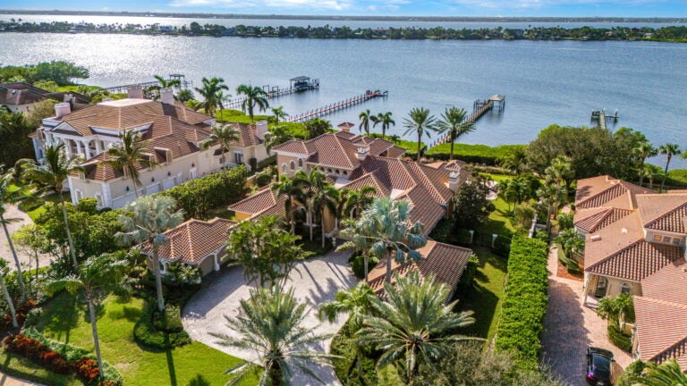 The 6,200-square-foot waterfront property features a private dock on the Banana River.