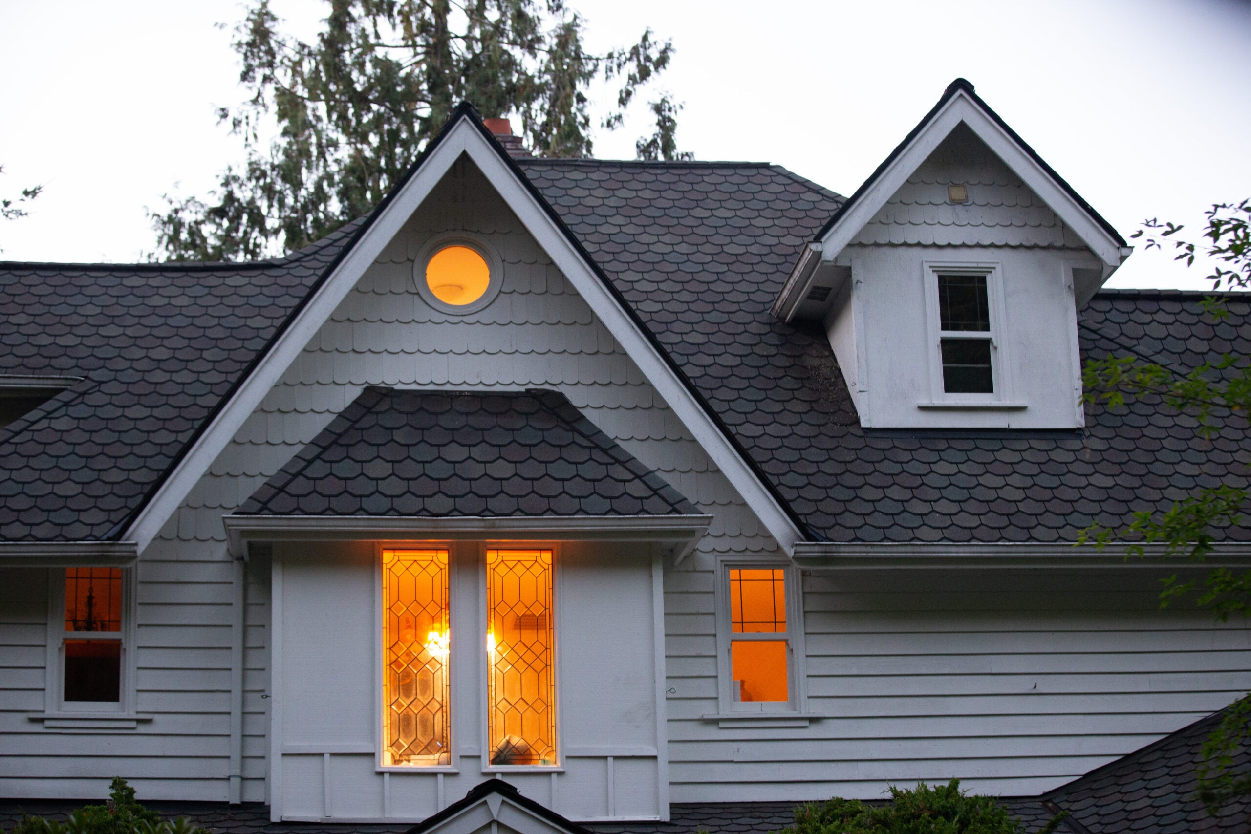No one is exactly sure when the bats moved into the home, but Kurt Licence, a biologist with the Washington Department of Fish and Wildlife, said they were probablydrawn to its peaklocation on a hill. Since bats can’t fly without jumping off a high point, the home’s perch was a draw. It overlooked the water, so there would be lots of insects for them to eat most of the year. It was full ofcozy nooks and crannies. The multi-peaked roof was built with something called skip sheathing: staggered wood joists that allowed for easy movement and ventilation.