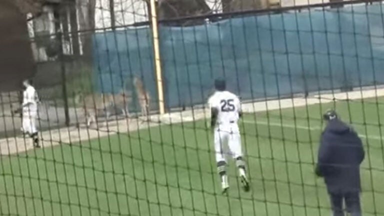 Video: Brandeis baseball game interrupted by intruding deer