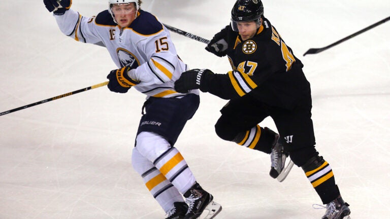 NOTES: Bruins GM Don Sweeney said the club could make F David Pastrnak available to the Czech Republic to play on its national team in the 2016 World Junior Championships when the NHL’s roster freeze ends on Dec. 28 if Boston doesn’t have any injuries. Pastrnak missed seven weeks with a broken left foot before playing two games in the AHL. Sweeney said he hopes the experience would help the 2014 first-round draft choice’s confidence. ‘‘That would be our hope,’’ Sweeney said. … The Sabres had been off since a 3-2 shootout loss against Chicago at home last Saturday. … Boston D Torey Krug left with an undisclosed injury. … Boston is at Ottawa on Sunday, the first of a home-and-home set. The Sabres next play Monday when they host Washington.