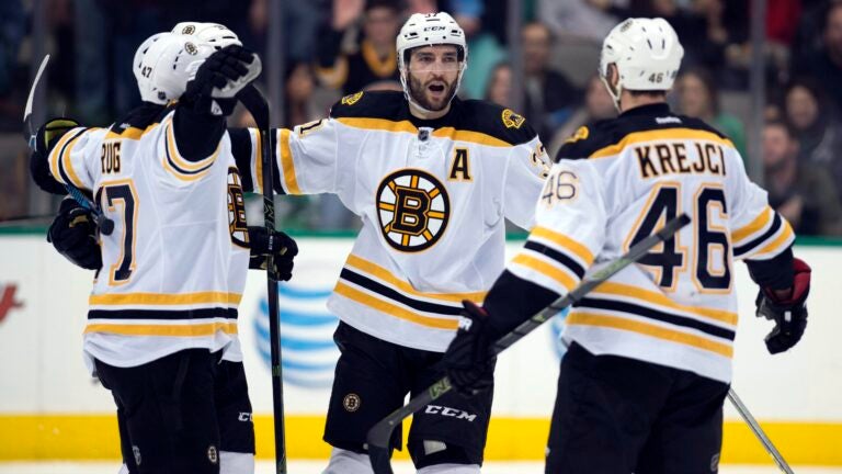 DALLAS (AP) — Brad Marchand’s goal in the second period ended Boston’s drought on the power play, and got the Bruins going on a big scoring night.