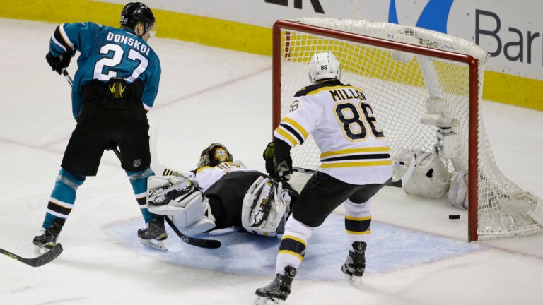 SAN JOSE, Calif. (AP) — Joonas Donskoi scored a tiebreaking power-play goal with 13:23 remaining after an offensive zone penalty by Boston’s Jimmy Hayes and the San Jose Sharks beat the Bruins 3-2 on Tuesday night.